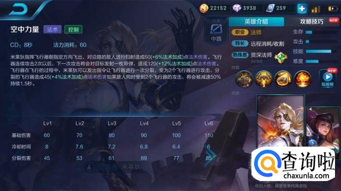 一技能:空中力量。米莱狄向指定方向释放技能造成伤害,中间可二次释放,这个技能最主要用来消耗。