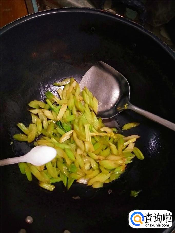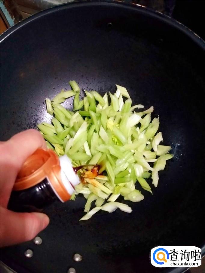 根据个人的口味,加入适量的盐调味,芹菜很容易吸盐,所以不要放太多的盐。