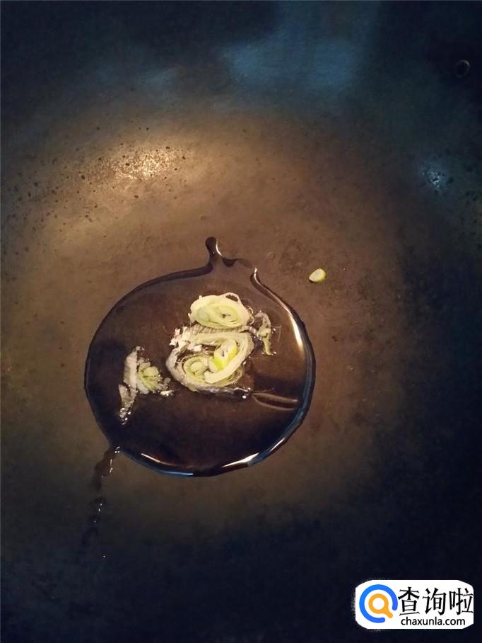 锅中放入花生油,油热后,放入葱花炝出香味。