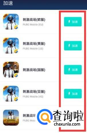 将图示位置软件下载完毕之后,打开加速器,进入加速器页面即可看到欧服美服日韩服等国际服,点击“加速”即可进入,如图所示。