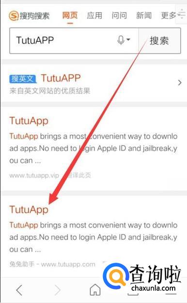 进入之后,搜索“TutuAPP”,点击搜索结果并进入,如图所示。
