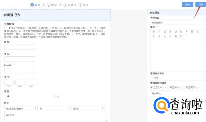内容编辑完成之后,点击右上角的发布,完成表单制作。