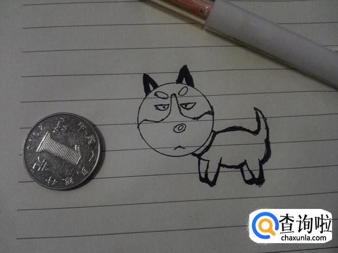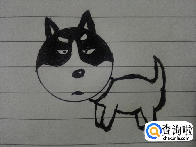 将二哈脸部需要填充颜色的描黑,这样一只二哈就画成了。
