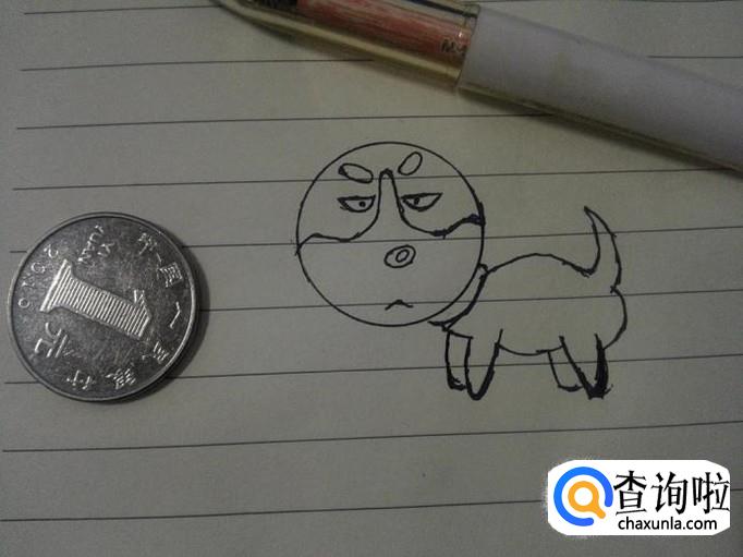 接下来画出二哈的身子,先画背部的线条直接到尾巴,从尾巴顺延而下画二。这接着画二哈的前腿,肚子,最后画后腿。