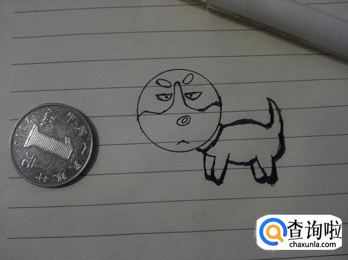 在圆里画出二哈的眼睛、鼻子和嘴巴以及头部的线条。
