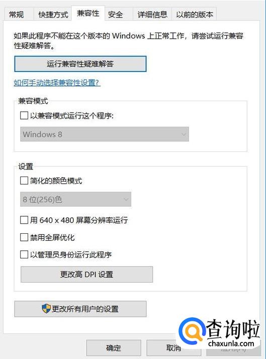 如果上述方法不可行,有可能是软件的兼容问题,可以右击该应用,点击属性,在面板中点击兼容性,将以兼容性运行这一栏进行勾选,然后确定