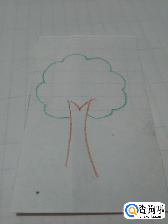 在树干上方用绿笔画一圈相连的弧线,表示树冠。