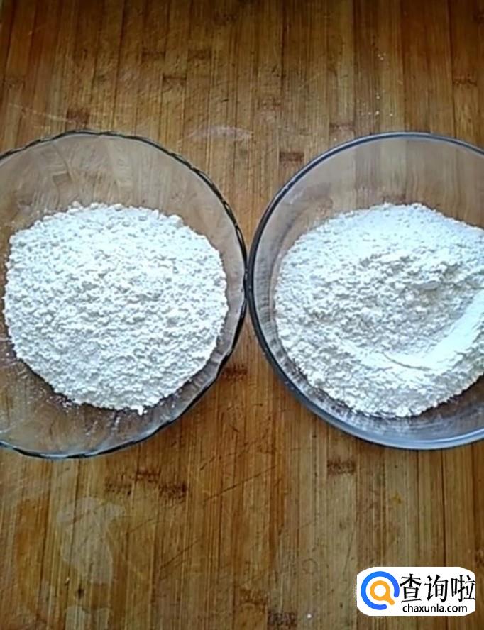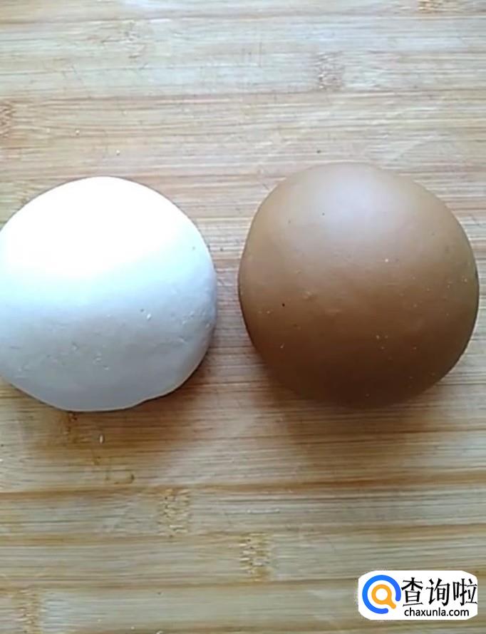 首先我们准备两碗面粉,然后我们在一碗中加入适量的牛奶,另一碗中加入适量的红糖水,分别揉成面团备用