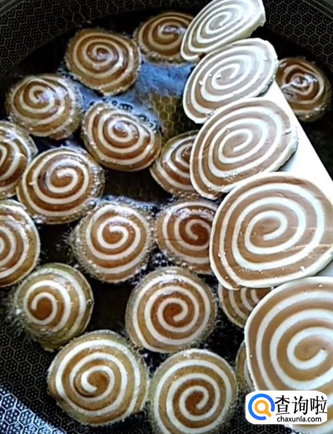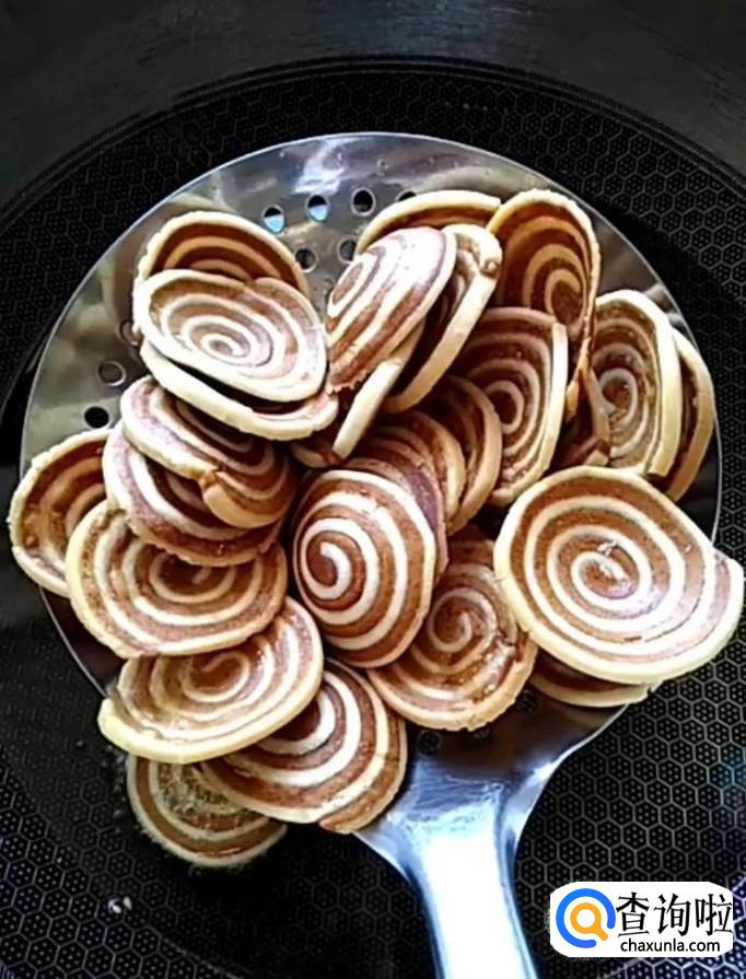 接着我们在锅中烧油,油温五成热下入锅中,炸至金黄酥脆捞出控油,美味的猫耳朵就制作完成啦!