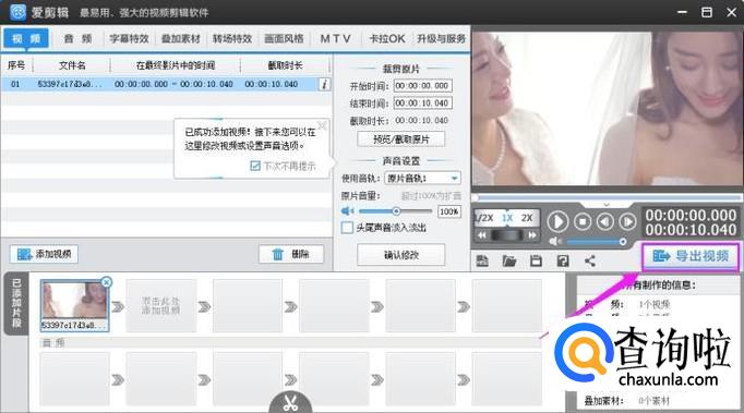 我们不截取,直接导出视频,如图。