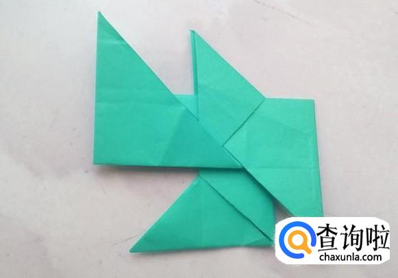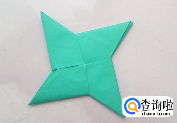 翻过折纸,把另外的2个尖角也按上面的方法插好,飞镖就折好了。