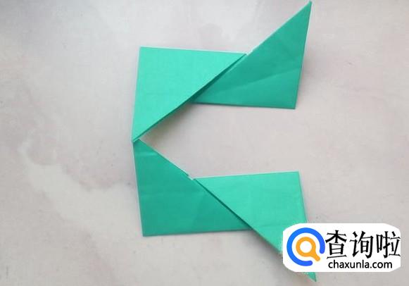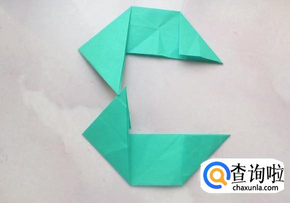 将2份折纸的左右两侧分别向下和向上折,成为下图的样子。