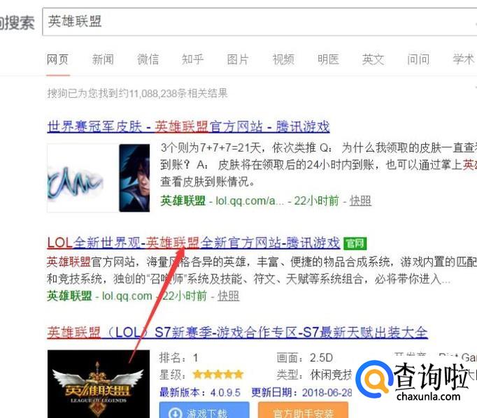 首先找到英雄联盟的官方网站然后进入,如下图。