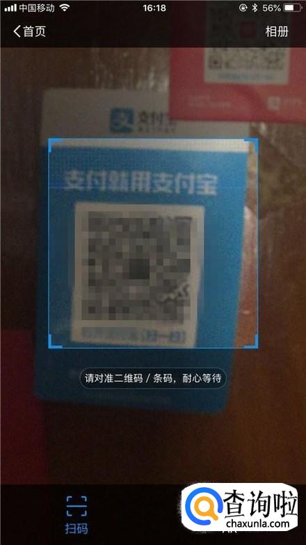 然后用我们的手机扫描商家的二维码,如下图所示。通过以上操作,我们就能够使用未领取的支付宝红包了。