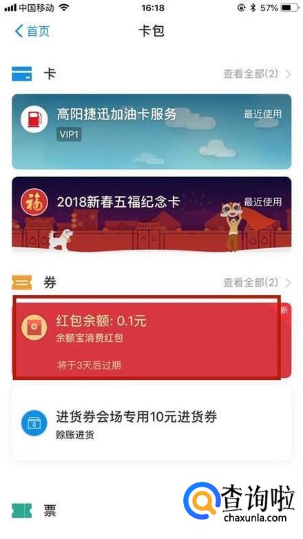 接着点击红包余额,如下图所示。在这里,你就可以查看到未领取的红包了。