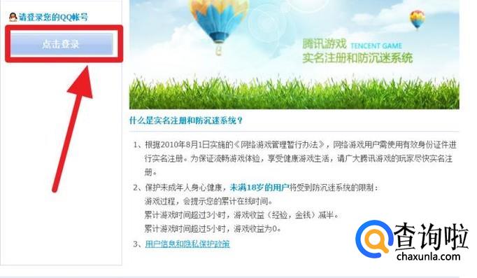 接着在跳出来的界面就是腾讯QQ防沉迷网页。点击登录自己的QQ。
