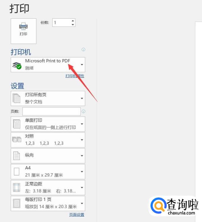 然后打印机选择有PDF的那个,接着点击打印。