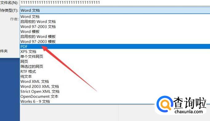 可以在文件格式里面找到PDF格式。