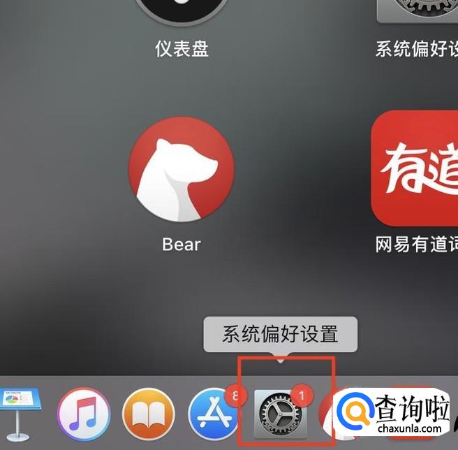 首先在桌面下方的悬浮栏中选择“系统偏好设置”点开。