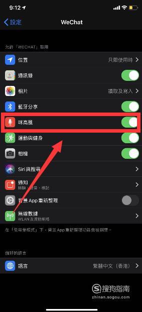 进入【微信】页面后,下方有个【麦克风】开关,点击【开】就可以了。