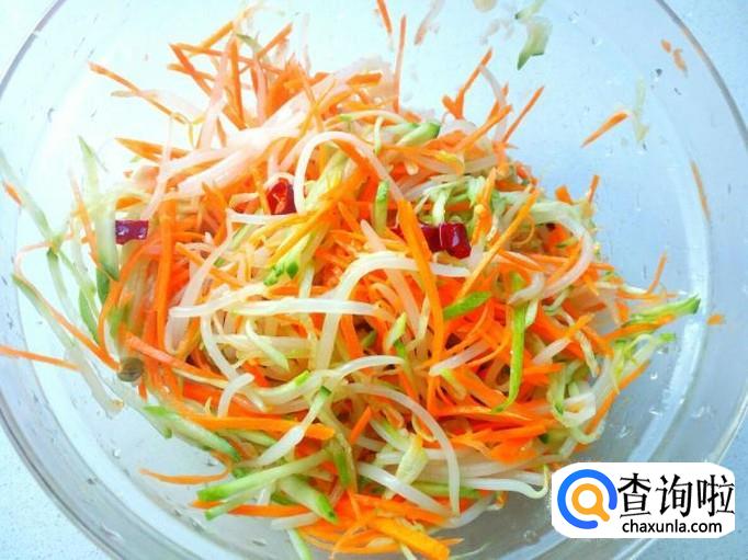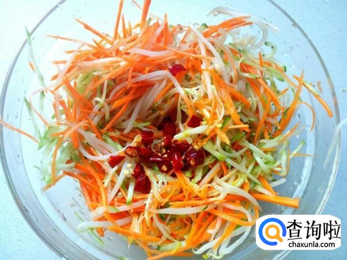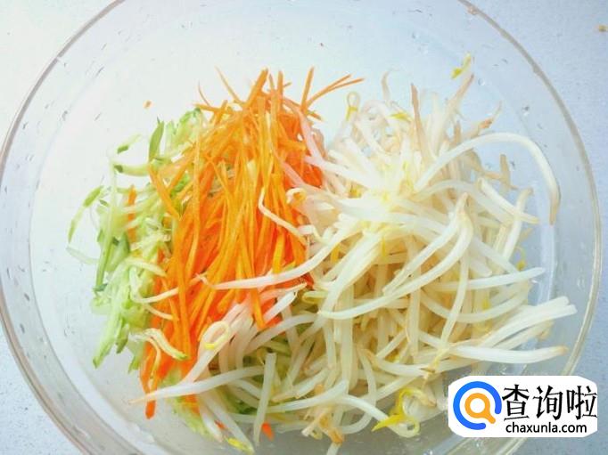 绿豆芽脆嫩爽口,具有解毒,补肾,利尿,消肿之功效。把绿豆芽焯水后,与胡萝卜,黄瓜配辅料拌成凉菜,口感清淡爽口,开胃消食,特别是在炎热的夏季食用,还有防治暑热烦渴的作用。下面介绍一下凉拌绿豆芽的家常做法。