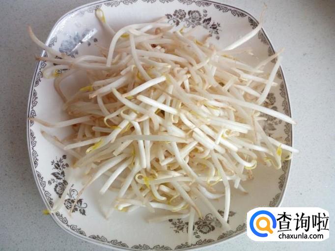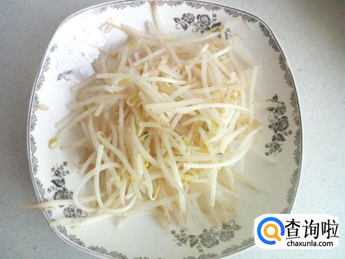 绿豆芽用水清洗干净。控干水分,备用。