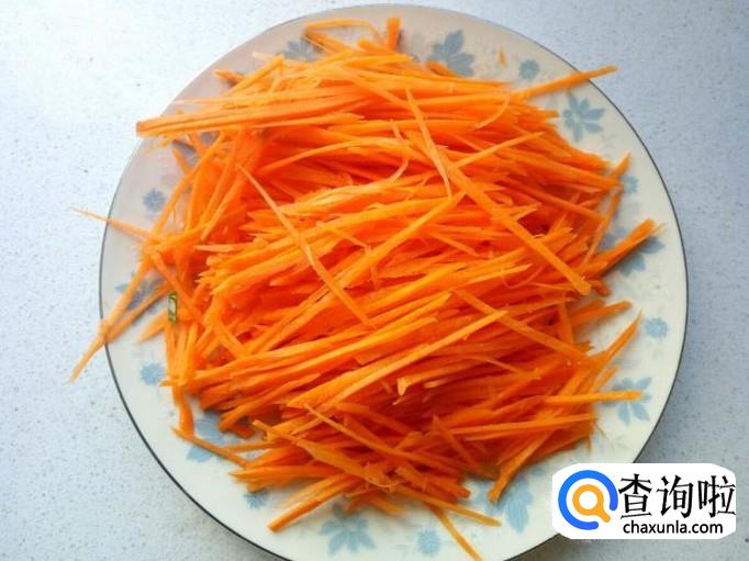 胡萝卜去皮,用水清洗干净,控干水分,切成丝。