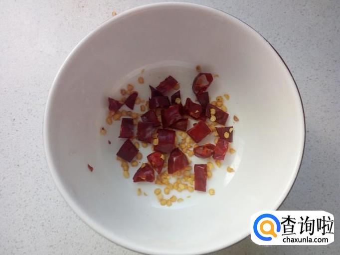 蒜切成末,红干椒切成小段,备用。