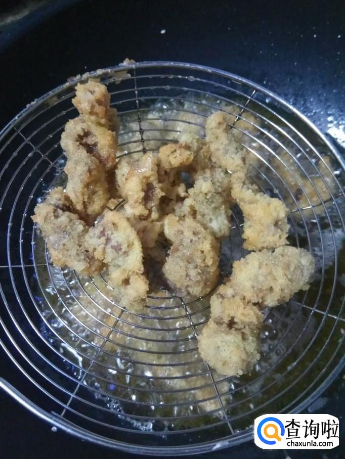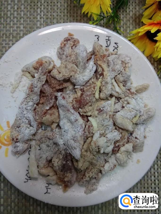 油锅放油,油温五成热,将牛肉条放入锅中,小火慢炸。