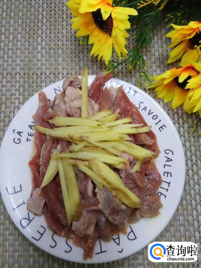 准备适量牛肉,用清水洗净,可以多洗几遍,将血水彻底清洗干净,然后切成长条,放入盘中备用。