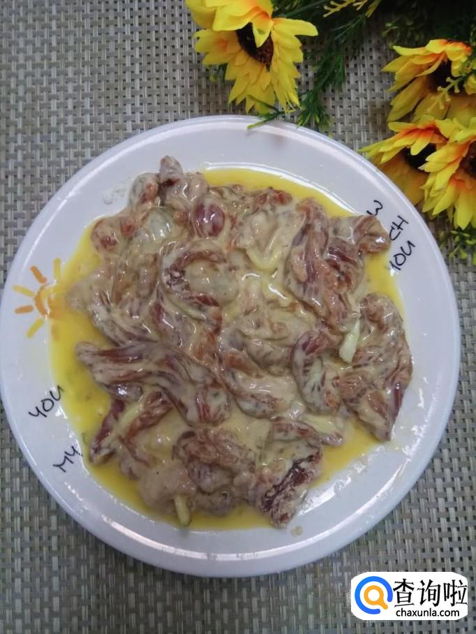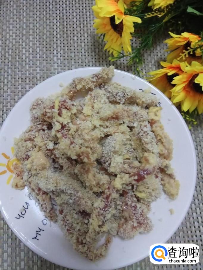 牛肉适量,淀粉适量,鸡蛋适量,姜适量,盐适量,鸡精适量,料酒适量,五香粉适量,麻辣鲜适量,面包糠适量,孜然粉适量。
