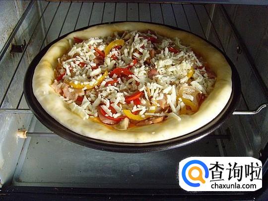 将烤盘放入250℃烤炉中,烘烤至面皮酥脆、奶酪熔化即可。