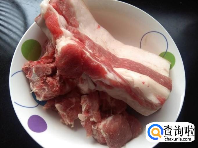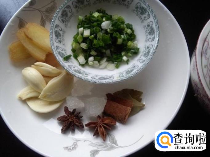 五花肉 排骨 八角 桂皮 香叶 姜 蒜 冰糖 黄酒 酱油 香葱