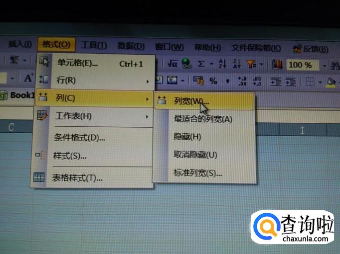 我们再点击格式菜单下面的列,在列的右侧选择列宽,在出来的列宽设置选项中输入10,然后点击确定,现在所有单元格的列宽都是10了。
