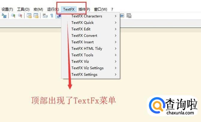 重启以后打开Notepad++软件,我们就会看到TextFX出现在了顶部的菜单上,如下图所示