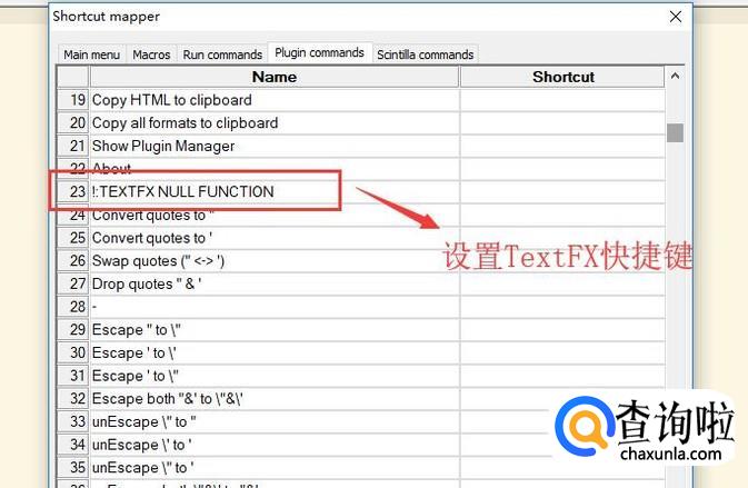 最后我们在快捷键管理界面中找到TextFX选项,在Shortcut选项设置快捷键即可,如下图所示