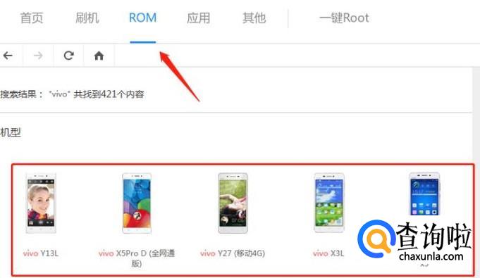 然后我们在“ROM”栏目下查找我们的手机型号,然后点击进入。