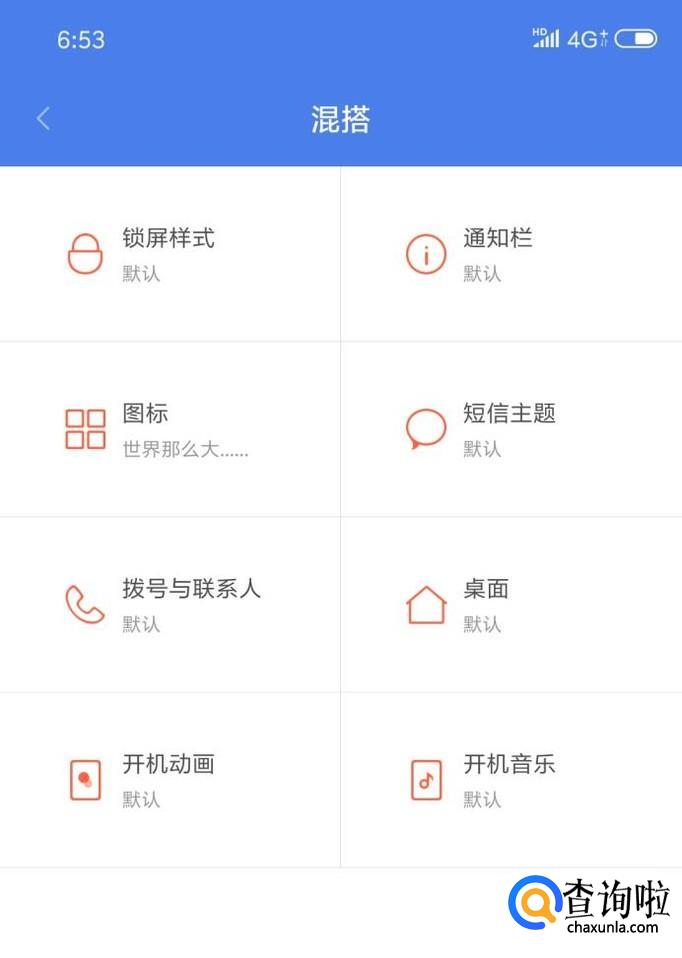 进入界面后,会看到一系列的设置,然后依次进入选择自己喜欢的即可,这样一份具有自己风格的主题便制作完成了