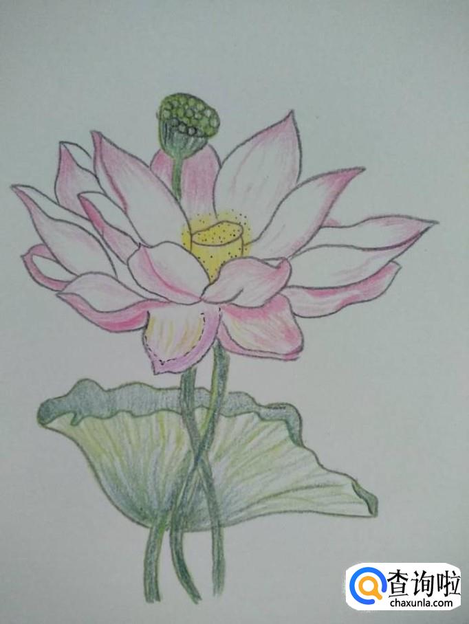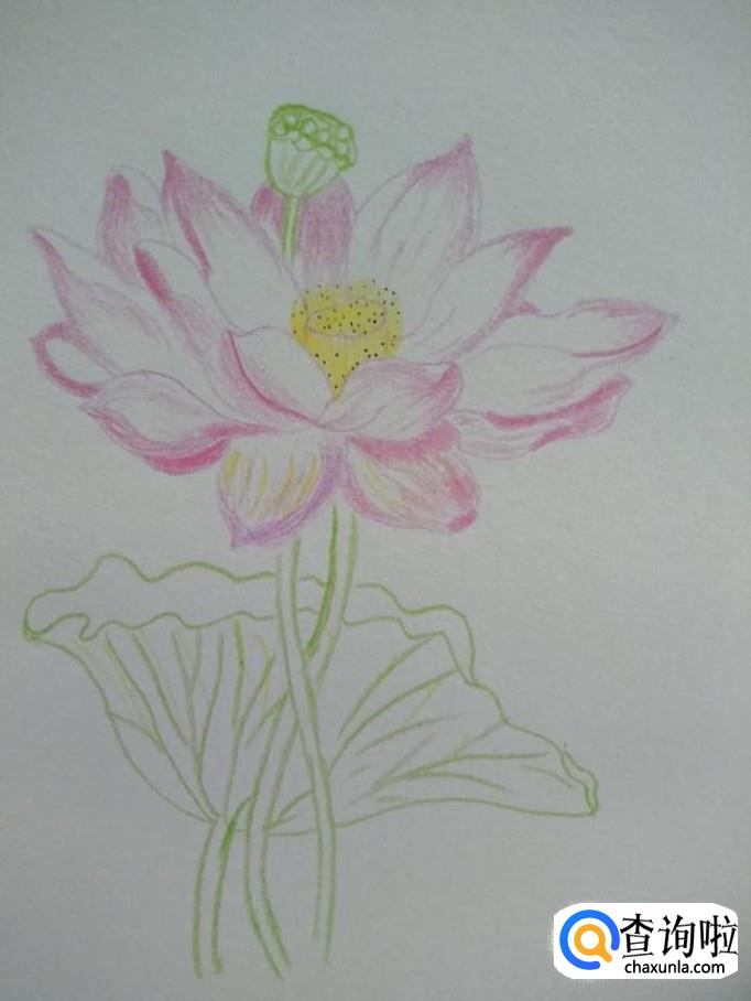 最后在用绿色彩笔为大莲蓬描绘,使其颜色更浓郁。这样美丽的荷花画好了。