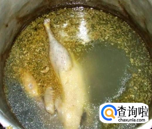 炆20分钟左右,打开盖子把鸭子翻转过来,再继续炆20分钟左右,然后用筷子插穿鸭子,没有血红水冒出来就是熟透了。