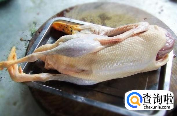 首先把土鸭清理干净。