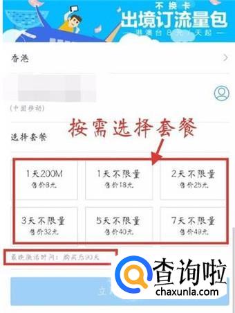 我们可以使用支付宝软件,自己开通境外流量,按自己的需求选择相应的套餐,然后点击购买,使用前激活就可以。