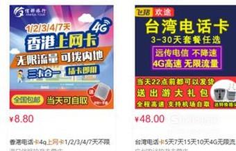 我们也可以在淘宝网上购买,专门适用于港澳台使用的流量卡,同样的根据自己的实际情况来购买。