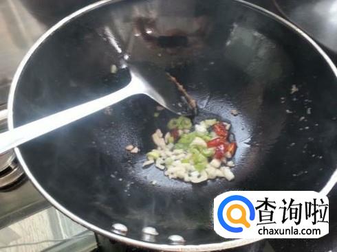 锅中放入适量的植物油,将油烧热。然后,放入葱姜蒜、辣椒煸炒出香味。