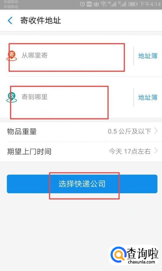 然后我们根据要求填写从哪里寄,寄到哪里,以及选择快递公司,然后我们等待快递上门取件就可以了。