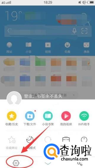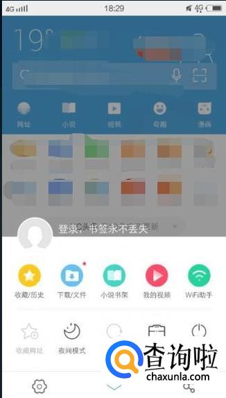 随便打开一个浏览器,然后从浏览器下方向上拉动,会弹出一个上拉菜单,如下图所示: