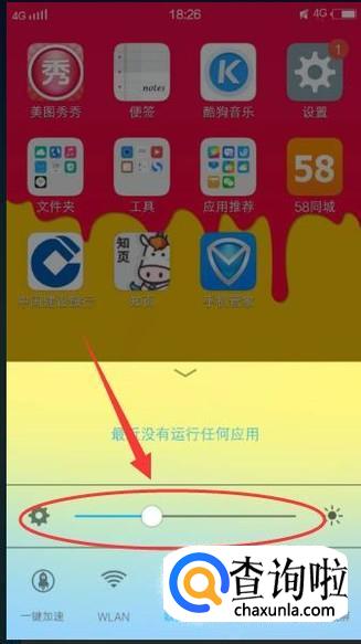 同样拉动上拉菜单的砝码,上左侧拉动表示降低屏幕亮度,向右侧拉动则表示提高屏幕亮度,如下图所示: