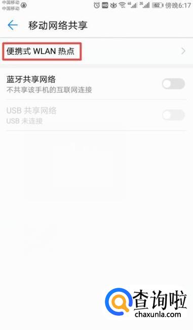 弹出的界面,我们点击便携式WLAN热点;