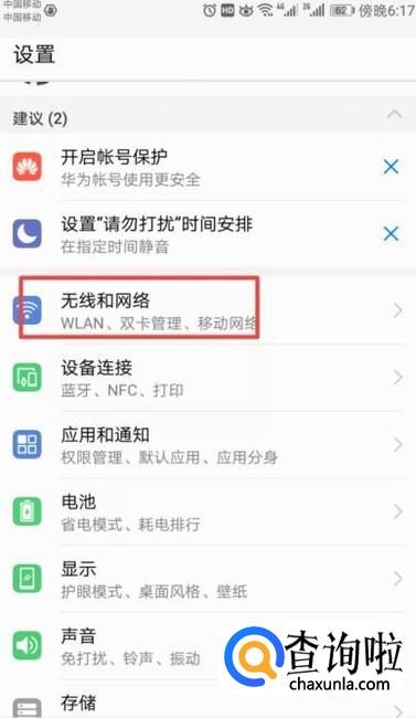 弹出的界面,我们点击无线和网络;