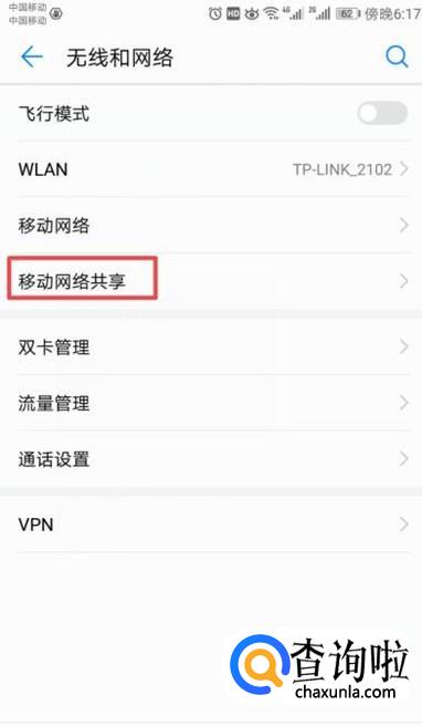 弹出的界面,我们点击共享移动网络;